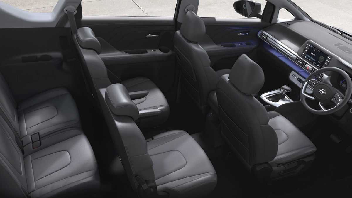Новая модель действительно компактна – учитывая, что в базовом оснащении это трехрядный вэн, он имеет в длину всего 4460 мм, что на 145 мм больше, чем, например, Крета. Объясняются такие габариты просто: Hyundai Stargazer построен на базе кроссовера Carens, являющегося родственником компактного Селтоса. Вместе с этим, семь полноценных мест в вэне можно превратить в шесть благодаря опциональным капитанским креслам на втором ряду. Они доступны за доплату, как и довольно обширный список опций.