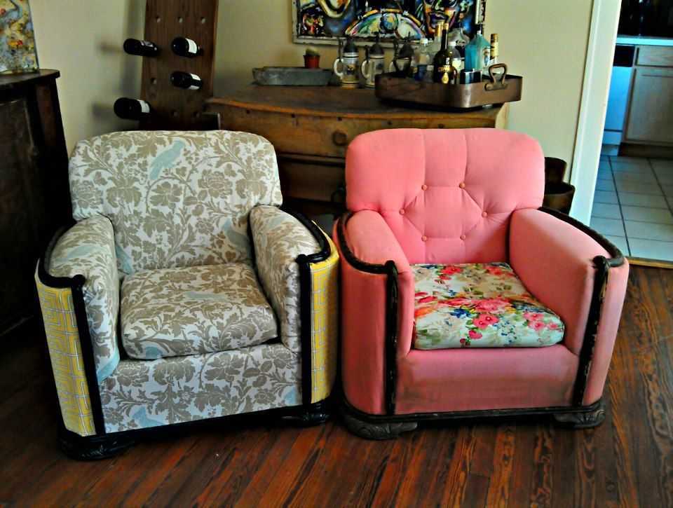 - Обивка конструкции. Этот вариант предполагает размещение ткани даже на местах, где раньше было дерево. Например, если деревянные подлокотники со временем износились и восстановить привлекательный внешний вид невозможно, то проще обтянуть их тканью и проложить поролон, превратив жесткие элементы в мягкие.