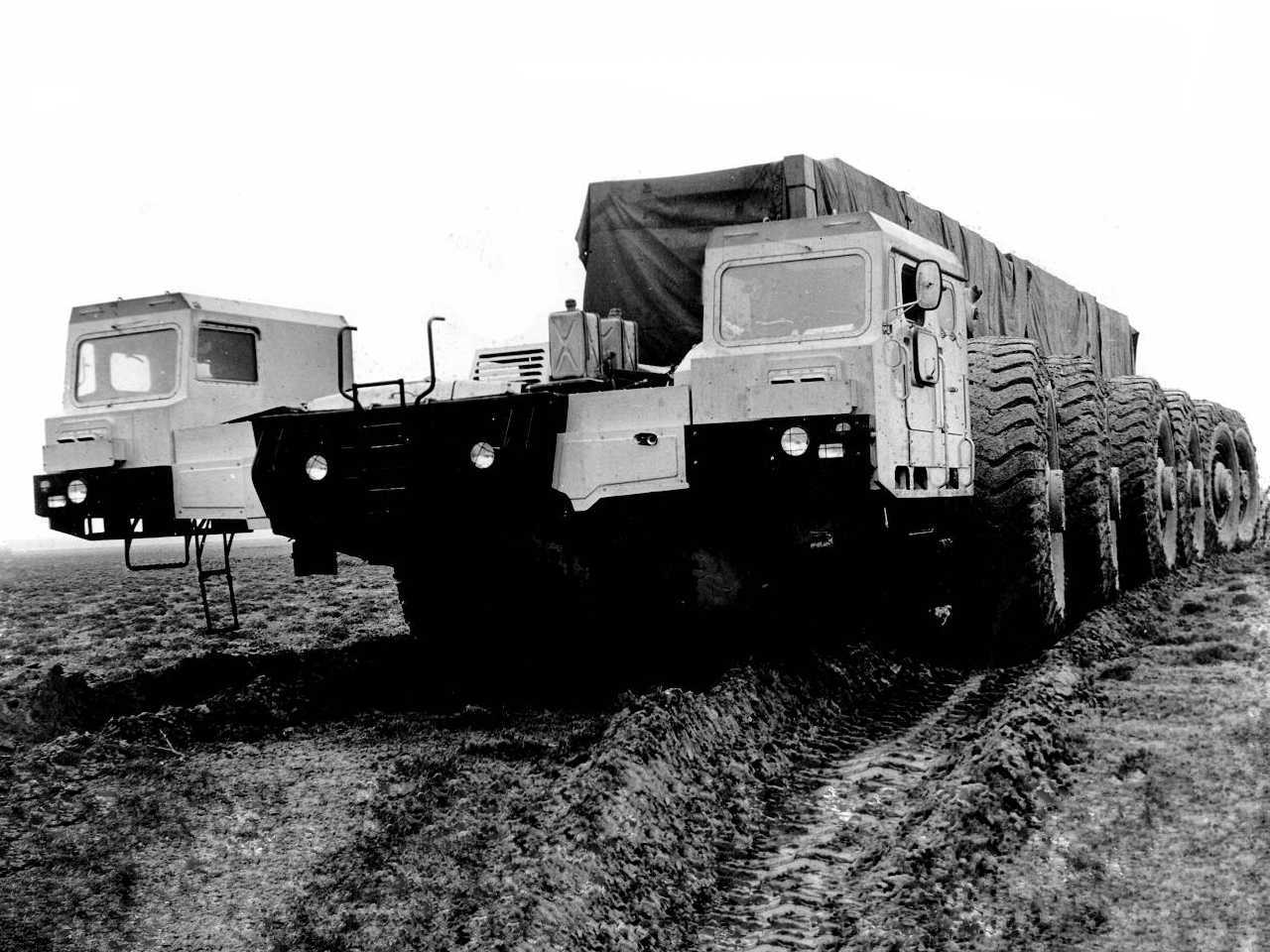 Шасси для тяжелого ракетного комплекса «Целина» — результат секретных разработок. Предприятие выпустило единственный образец техники для испытаний в 1984 году. Максимальный вес груза составлял рекордные 220000 килограмм. Никто на земле в те времена не смог повторить достижение.
