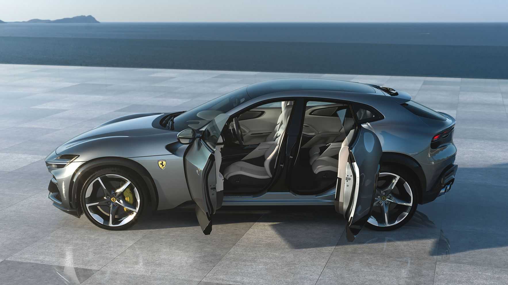 Две дополнительные двери – еще один аспект, который будет пройден и решен по-своему. SUV Ferrari не получит вертикальную стойку, а задняя дверь будет открываться в противоположном движению направлении.