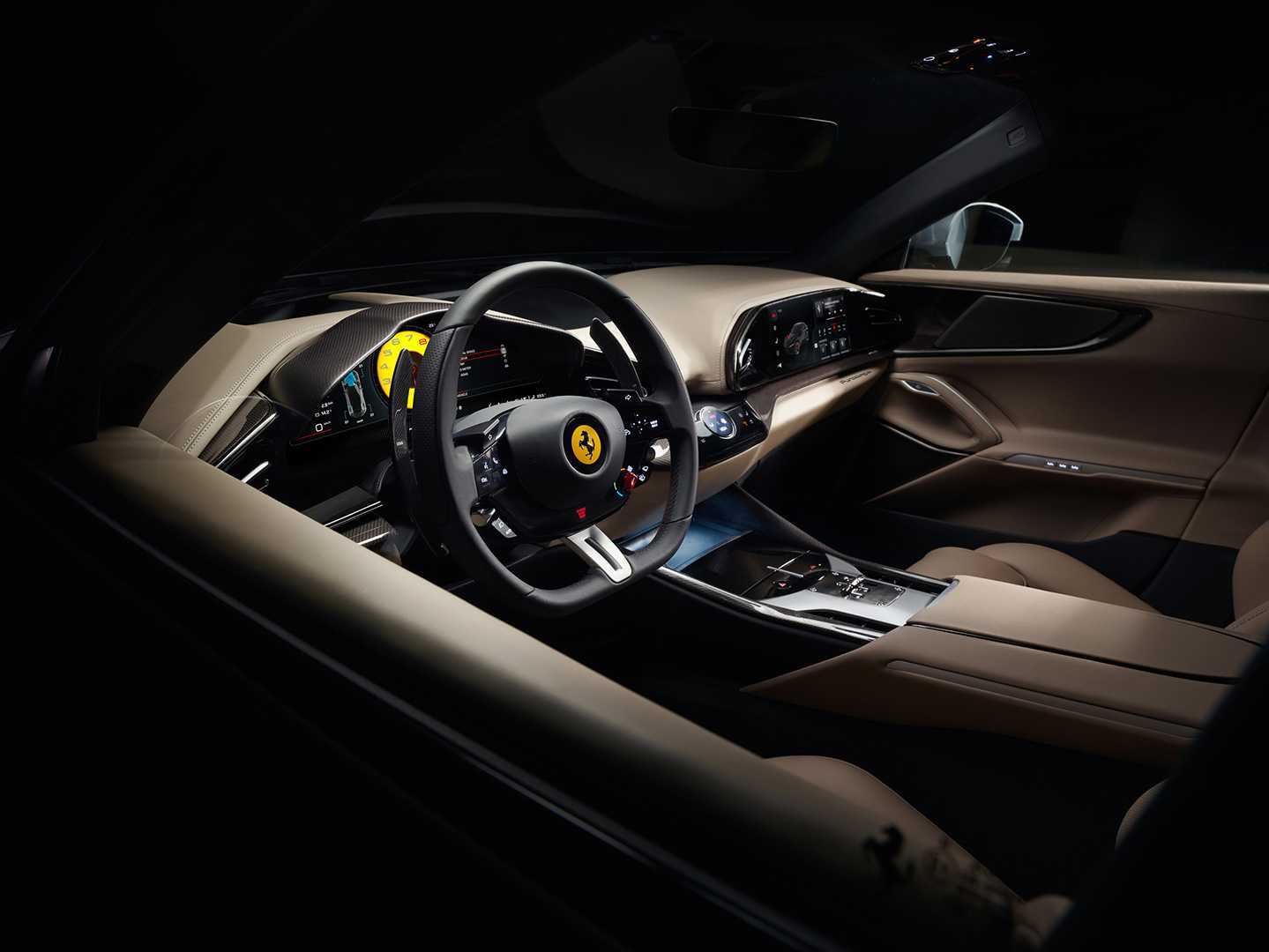 В салоне четыре отдельных кресла-ковша. Интересно, что, несмотря на форму кресел и элитарность Ferrari Purosangue, их можно сложить, чтобы перевести какие-то длинные предметы в багажнике.