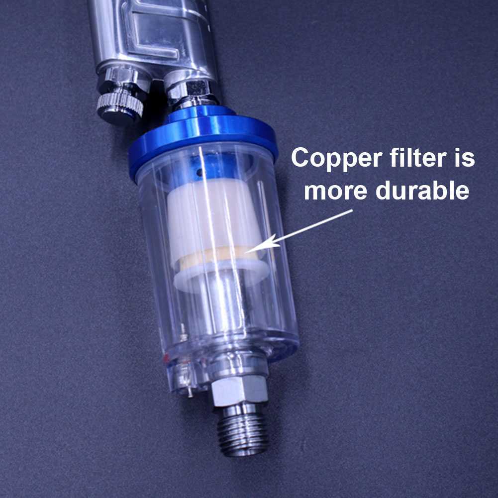 Компактный магистральный фильтр весом в 1 кг – великолепный образец продукции этой категории. Это не самое мощное устройство, но успешно применяется в домашних условиях для разовых работ и в профилированных мастерских по покраске машин.
