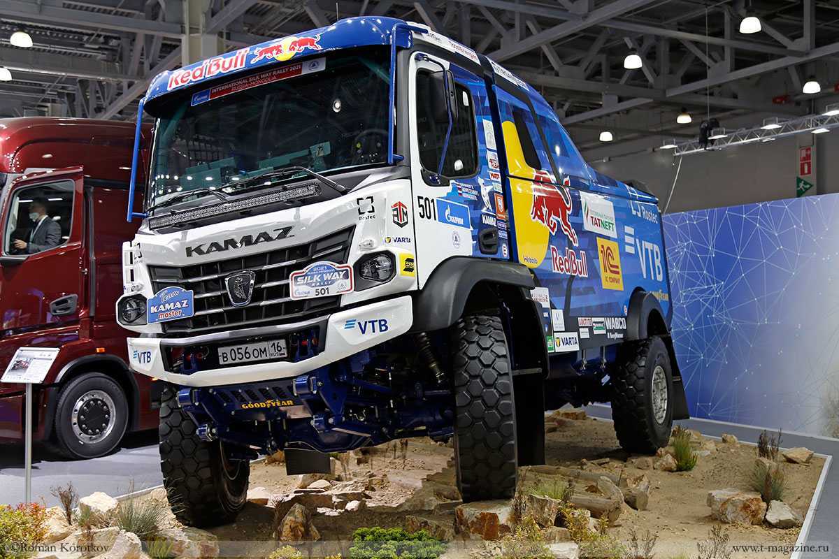 Объектом притяжения на стенде был и победитель ралли Dakar – автомобиль команды КАМАЗ-Мастер КамАЗ 435091. Этот болид оснащён двигателем DCEC ISZ 13 совместной разработки DongFeng Cummins. Мощность шестицилиндрового 13 литрового двигателя доведена до 1050 л.с. Полная масса грузовика 10 200 кг.