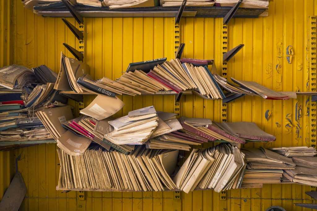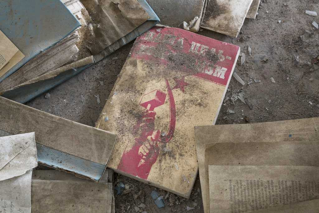 Ангар заполнен заброшенными советскими технологиями, книгами и литературой