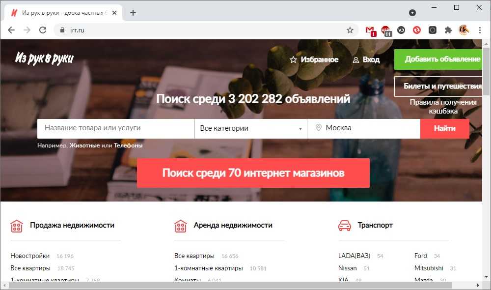 Irr – один из самых старых в стране проектов, посвящённых частным объявлениям. Его история ведётся с начала 90-х годов двадцатого столетия. Изначально он представлял собой газету «Из рук в руки», а теперь это исключительно Интернет-сайт и мобильное приложение. В нём представлены объявления множества тематик. При этом выбор подержанных автомобилей здесь довольно велик. Помимо легковых авто, также встречаются грузовики и автобусы, мото- и спецтехника, автомобильные запчасти и аксессуары. Кроме частных объявлений, можно найти предложения и от компаний, даже дилерских. Проверить достоверность и точность информации непросто. Можно столкнуться с обманом, но нередко встречаются интересные и весьма выгодные предложения. Поэтому выбирать машину здесь следует внимательно и вдумчиво.