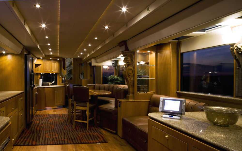 Рейтинги таких шикарных автодомов чаще всего возглавляет роскошный автомобиль Anderson Mobile Estates, популярность которого на планете огромная. Это не только суперкомфортность, равной которой у его соперников практически нет, но также идеальная обзорность: благодаря установленным на нём камерам водитель получает максимальную информацию обо всем, что делается вокруг трейлера. Понятно, что и цена такого красавца со всеми его фантастическими «наворотами» немалая: подчас она превышает два миллиона долларов.