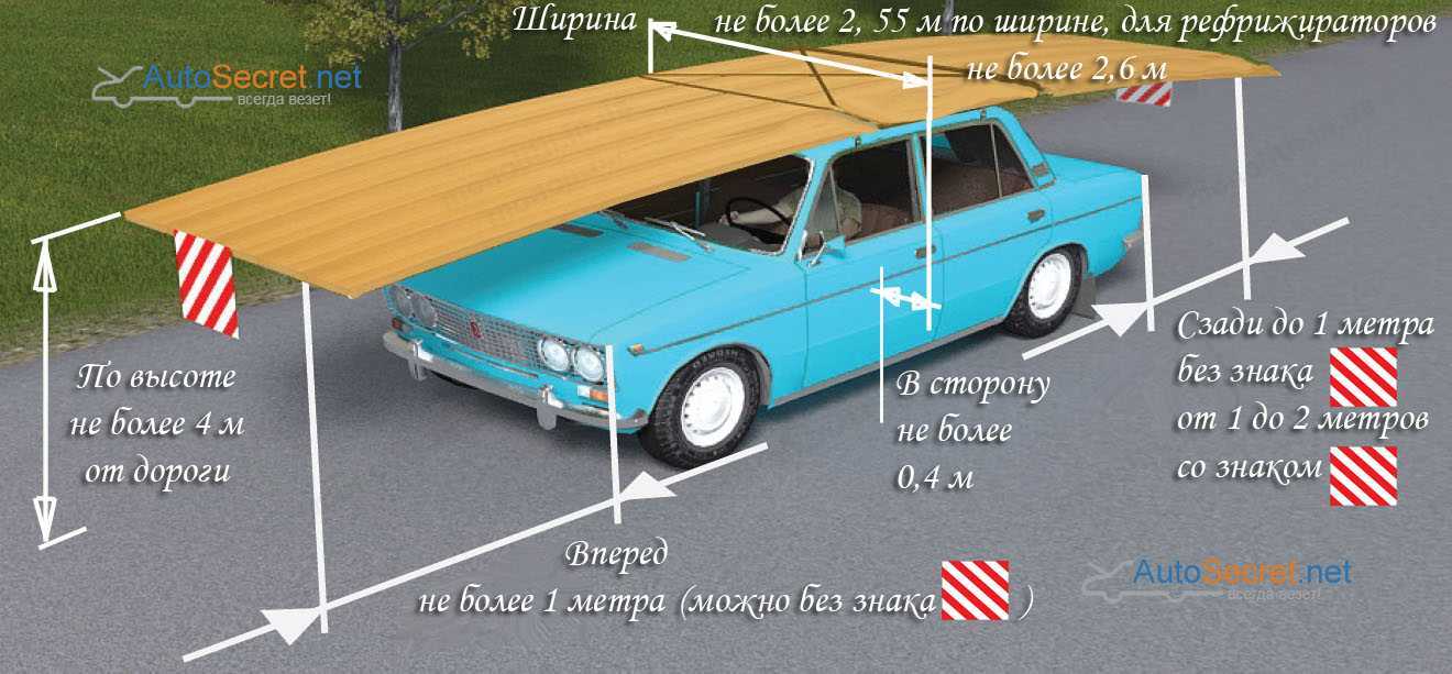 Собственно можно уже подвести кое-какие итоги. Если габариты не превышают 2,55 м по ширине, 20 м по длине, 4 м от дороги по высоте и 2 метра сзади, то это даже если и крупногабаритный груз, то перевозится без специальных правил, то есть только согласно ПДД. Если же габариты более того, то здесь согласно федерального закона Российской Федерации от 8 ноября 2007 г. № 257-ФЗ «Об автомобильных дорогах и о дорожной деятельности в Российской Федерации и о внесении изменений в отдельные законодательные акты Российской Федерации» пользователям автомобильных дорог запрещается осуществлять перевозки по автомобильным дорогам крупногабаритных грузов без специальных разрешений. Про эти разрешения мы рассказывать не будем, то есть как мы и сказали сразу вначале нашей статьи, мы затрагиваем лишь случаи для рядовых автомобилистов, а не для профессиональных перевозчиков. Расскажем лучше о штрафе, если ваш груз выступает за те пределы, которые указаны на последней картинке.