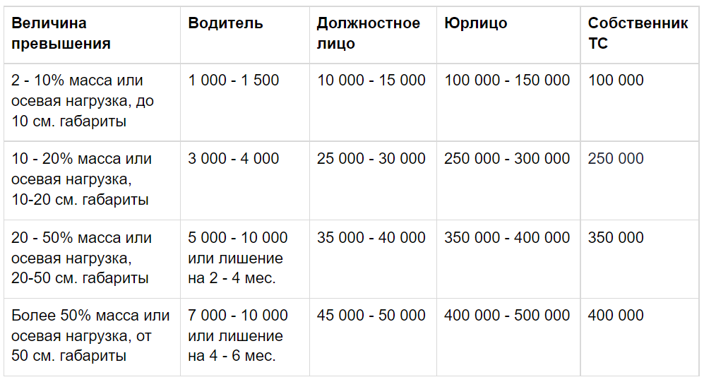Сейчас КоАП предусматривает штрафы для перевозчиков до 400 тысяч рублей — в зависимости степени превышения допустимой массы или габаритов.