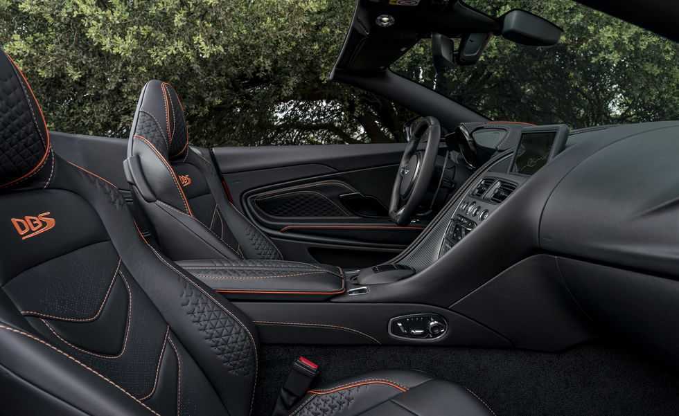 The DBS Superleggera is a grand touring sports car and as such comes standard with plenty of luxuries to make your trip comfortable. Leather-wrapped power-adjustable sports seats with heat and memory settings are standard. The cabin can be styled with several different types of trim, including open-pore ash wood, carbon fiber, or satin-finished chrome. We aren’t sure how many carry-on suitcases will fit inside the DBS’s trunk because, unfortunately, we’ve not had one in our office for testing. But Aston Martin will sell you a four-piece custom luggage set that’s even color-matched to the interior of your specific car.