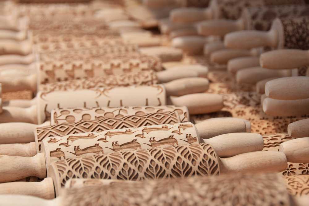 Изготовить фигурные скалки с мелкой детализацией можно методом лазерной гравировки. Такие скалки лучше всего делать из твердых пород дерева, например, из бука. Также пользуются спросом сегодня формы для пряников. До появления станков, умельцы, создающие доски с вырезанными в них контррельефом, должны были обладать уникальными навыками выемчатой резьбы, а изготовление таких досок заказывали лучшим пекарям.