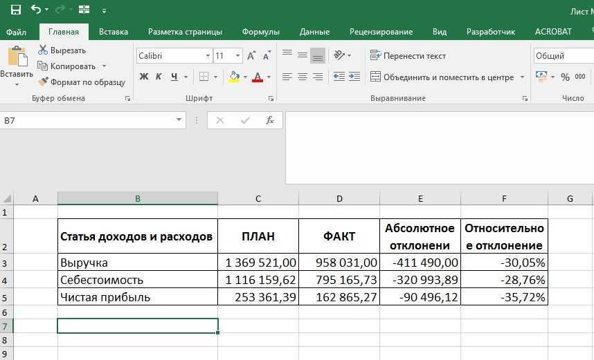 Первый шаг. Открываем рабочую таблицу, в котором необходимо скрыть две строчки: выручка и себестоимость.