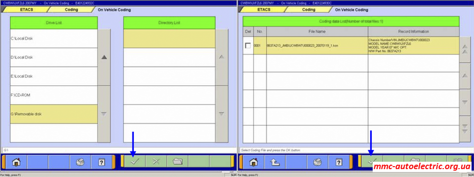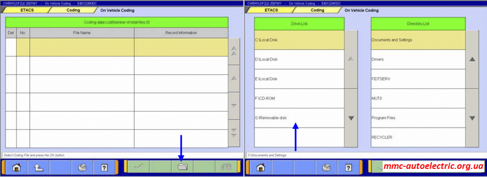 Также существует возможность выбрать файл непосредственнос флэшки или CD диска во время проведенияпроцедурыVariant coding, см.указанияниже.