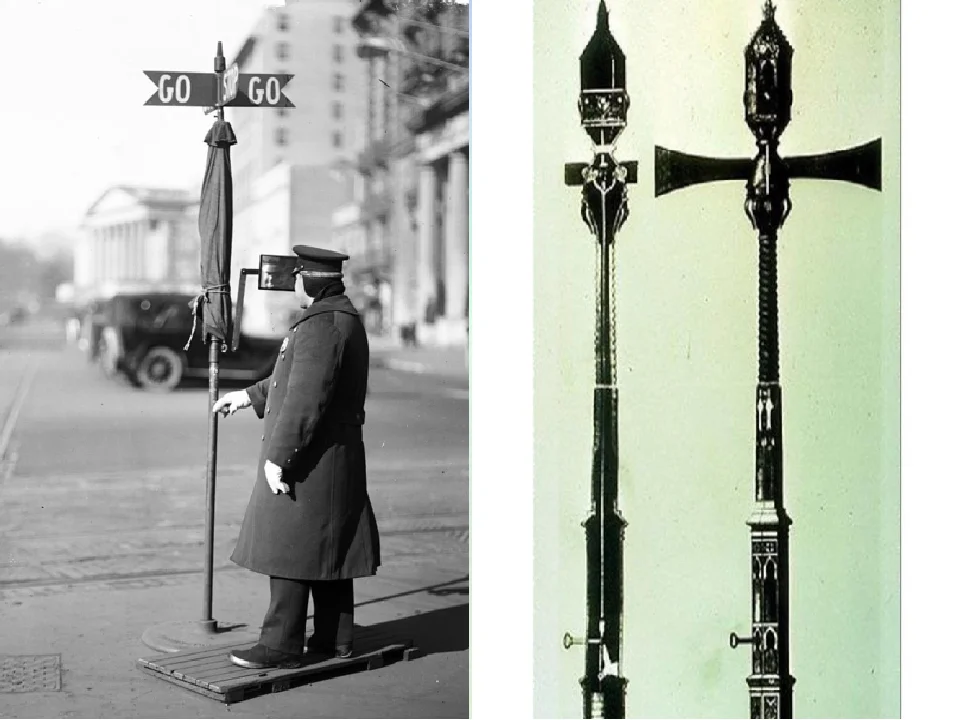 На оживленных перекрестках полицейские контролирующие правильность движения автомобилей работали в паре с полицейскими, которые вручную переключали механические светофоры, с несколькими сигнальными лампами. Также в некоторых местах устанавливались семафоры, которые имели надписи предписывающие водителям, что необходимо сделать (стоп или движение).