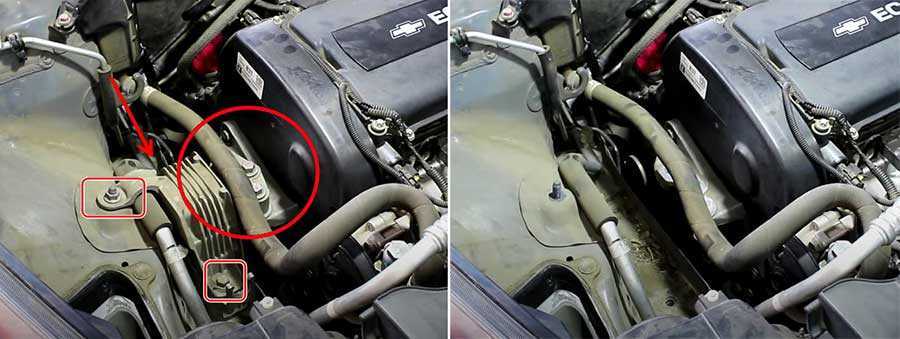 Верхняя крышка железного кожуха удерживается 5 болтами — 4 на 13 и 1 на 10. Если машина выпущена до 2008 года, на ней будут стоять болты на 16. По задумке производителя нижние болты закреплены на герметике, потому что в этом месте проходят масляные каналы. Для выкручивания этих болтов придётся приложить дополнительные усилия. К тому же, при сборке агрегата их снова нужно «посадить» на герметик.