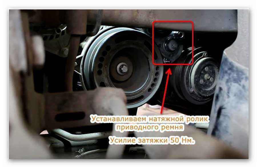 Затягиваем. Обводной с усилием 25 Нм, натяжной – 20 Нм.
