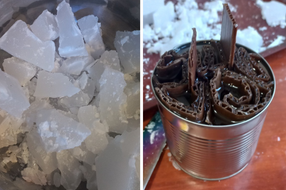 «В целом, уходит полчаса времени на одну банку без ожидания семь часов, но обычно это все делается поэтапно. Мне приносят большой пакет банок, я их все мою, жду, пока высохнут. Потом идет нарезка картона — тоже занимает какое-то время, и затем уже начинается процесс заготовок, когда картон в банки вставляется. Огромное время уходит на заливку», — делится волонтёр.