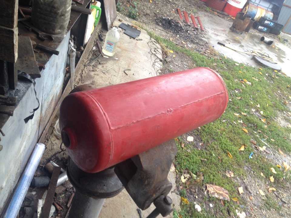 - Выходной кусок трубки приваривается уже строго по центру вверху баллона. При этом по длине труба составляет около 2/3 длины резервуара.