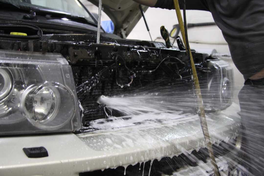 Профессиональное промывание сот радиаторов потоком воды под давлением с моющим средством