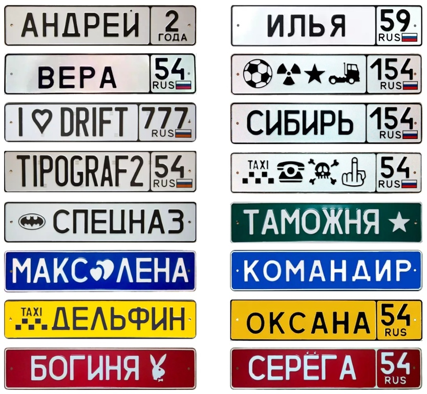 На дорогах России нередко можно встретить машины, на которых закреплены два госзнака. Поначалу кажется, что их габариты и внешний вид не представляют ничего особенного, но если посмотреть внимательно, то содержание второго знака оказывается совсем не стандартным. Как правило, автомобилисты заказывают подобные номера со своими именами или прозвищами. И тогда, вместо обычных буквенно-цифровых обозначений, на них может быть написано «Диман», «Петрович», «Машенька» и т.п.