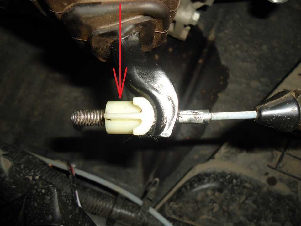 - Конец троса сцепления продевается из салона машины в отсек двигателя;