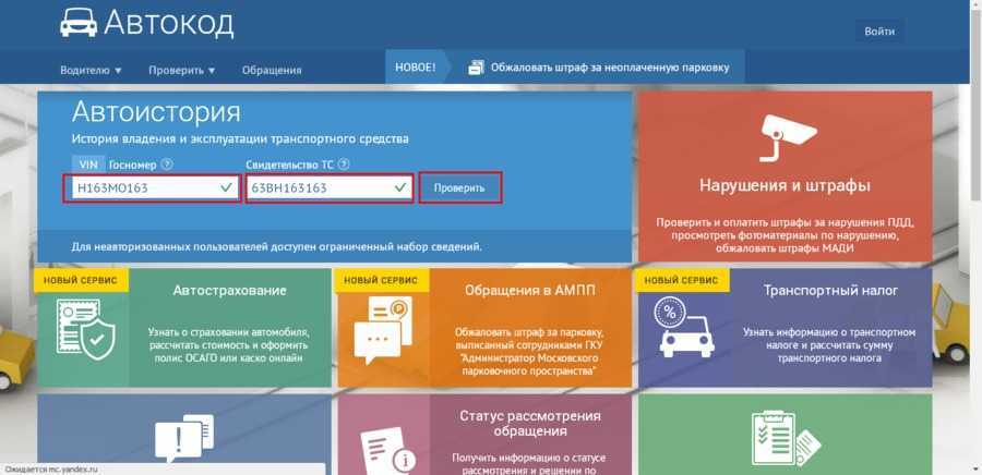 Большинство поисковых сервисов – платные, или предоставляют ограниченную информацию. В качестве примера можно рассмотреть запрос на сайте https://avtocod.ru/: