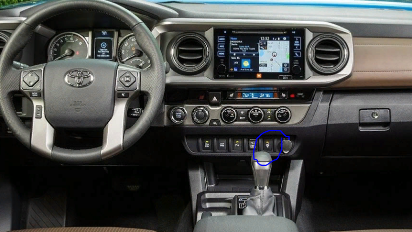 Удобная функция также представлена Toyota Tacoma, но уже моделью 2020 года. На кнопке изображен пикап, едущий по неровной полосе, а под ним подпись MTS. При помощи этой кнопки можно без страха передвигаться по бездорожью. Она помогает выбрать трассу (песок, камни, снег и т. д.) и устанавливает подходящий режим.