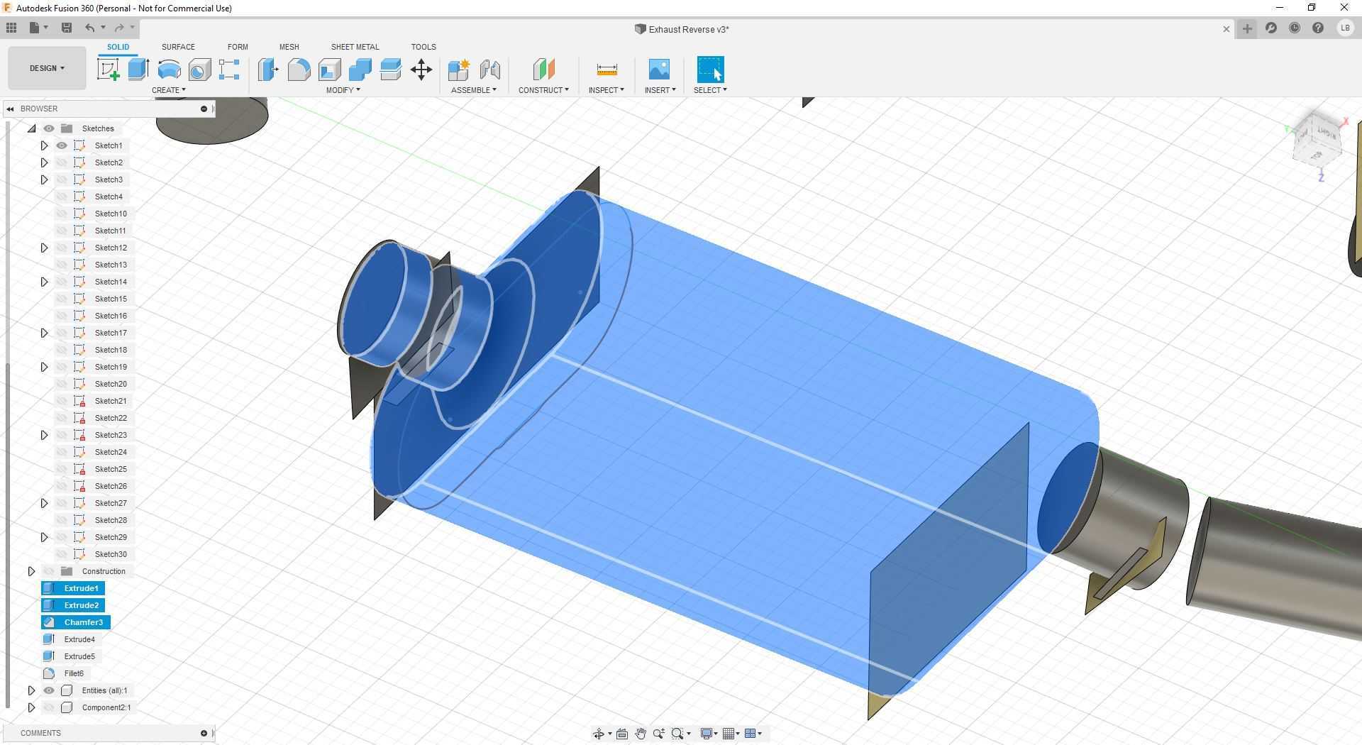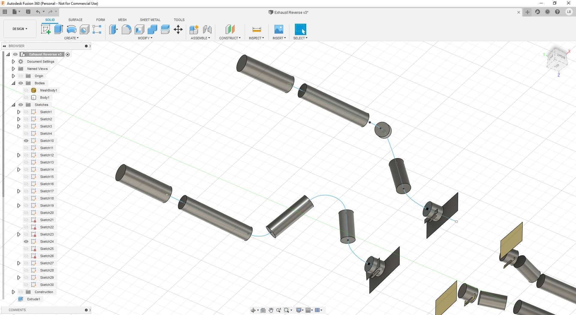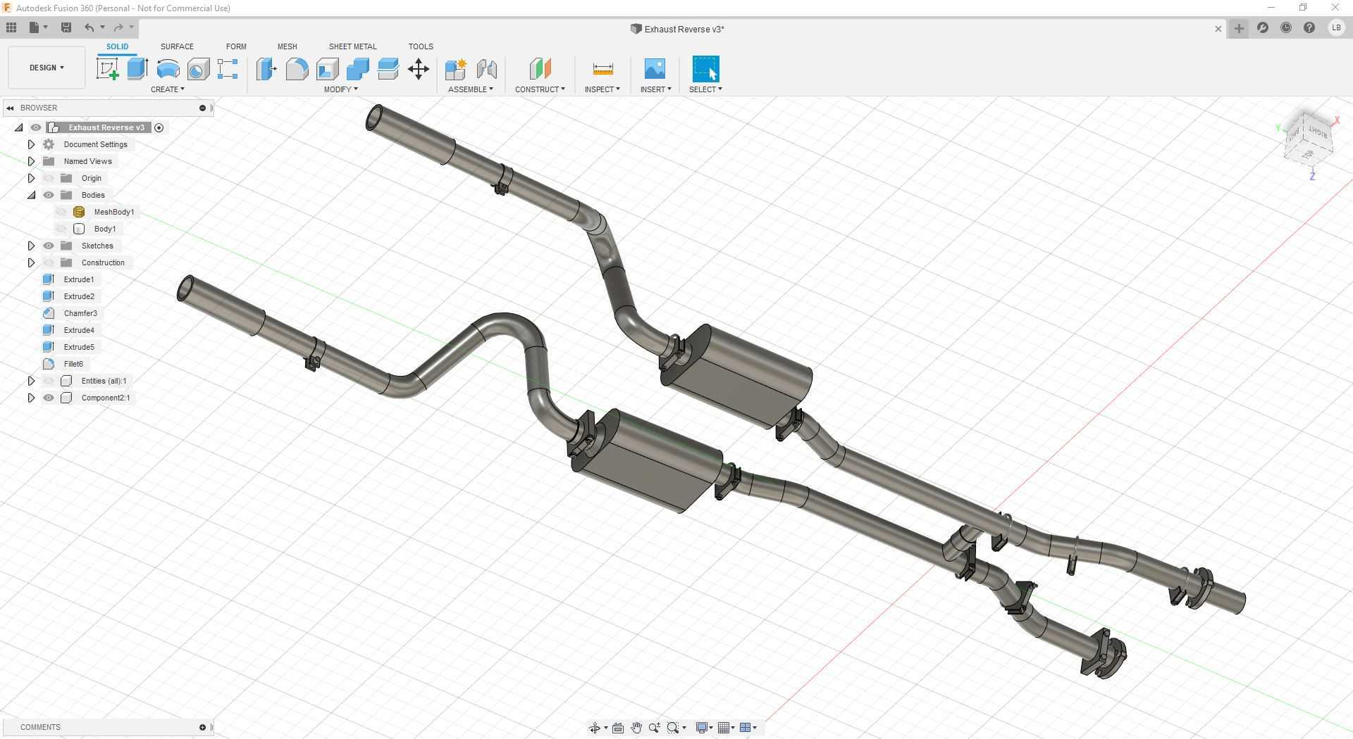 Теперь у нас готова полноценная параметрическая 3D-модель выхлопной системы в САПР.