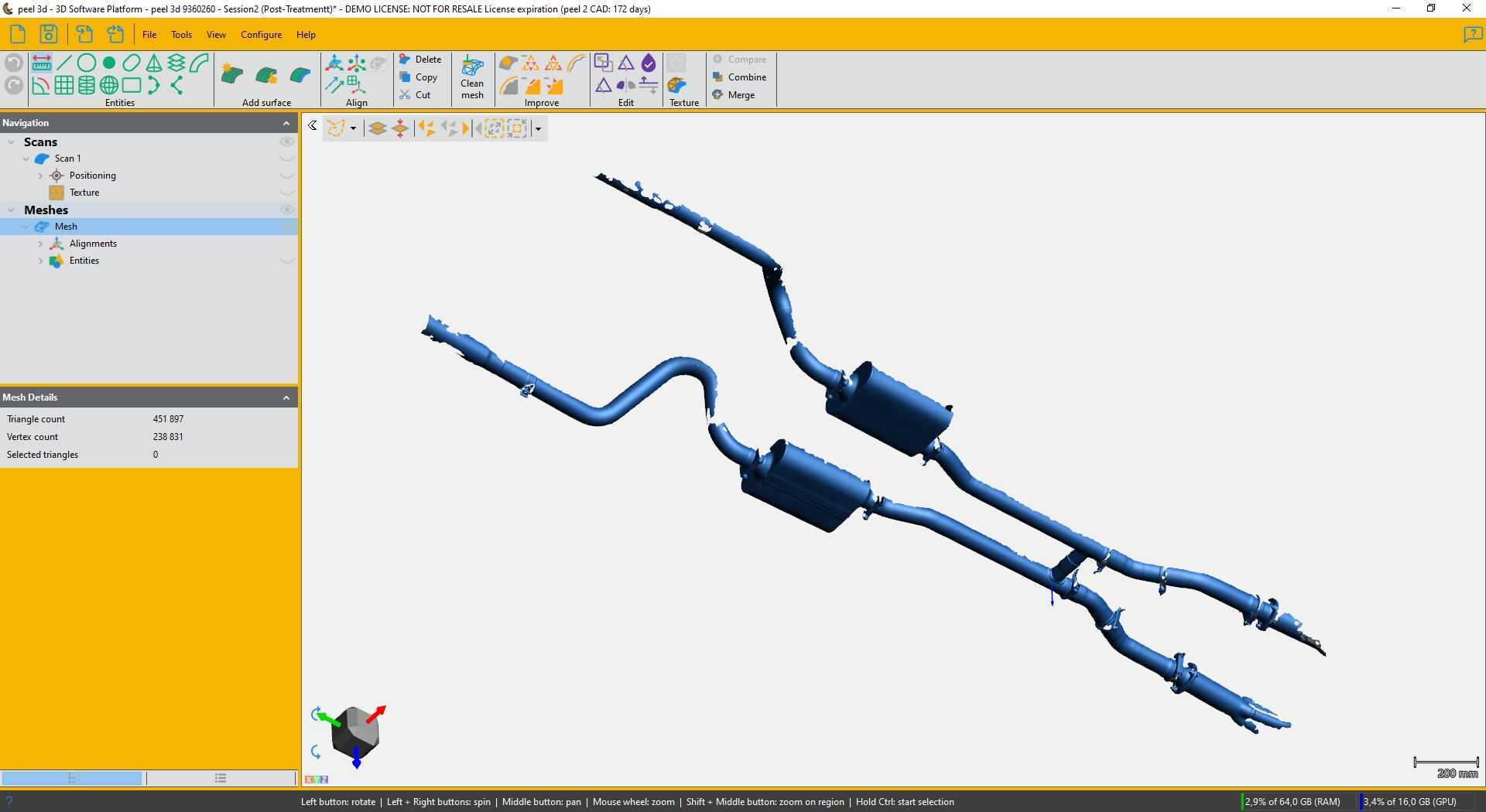 Первый этап постобработки – сразу после сканирования очистить сетку и удалить все лишние фрагменты геометрии, окружающие выхлопную трубу.