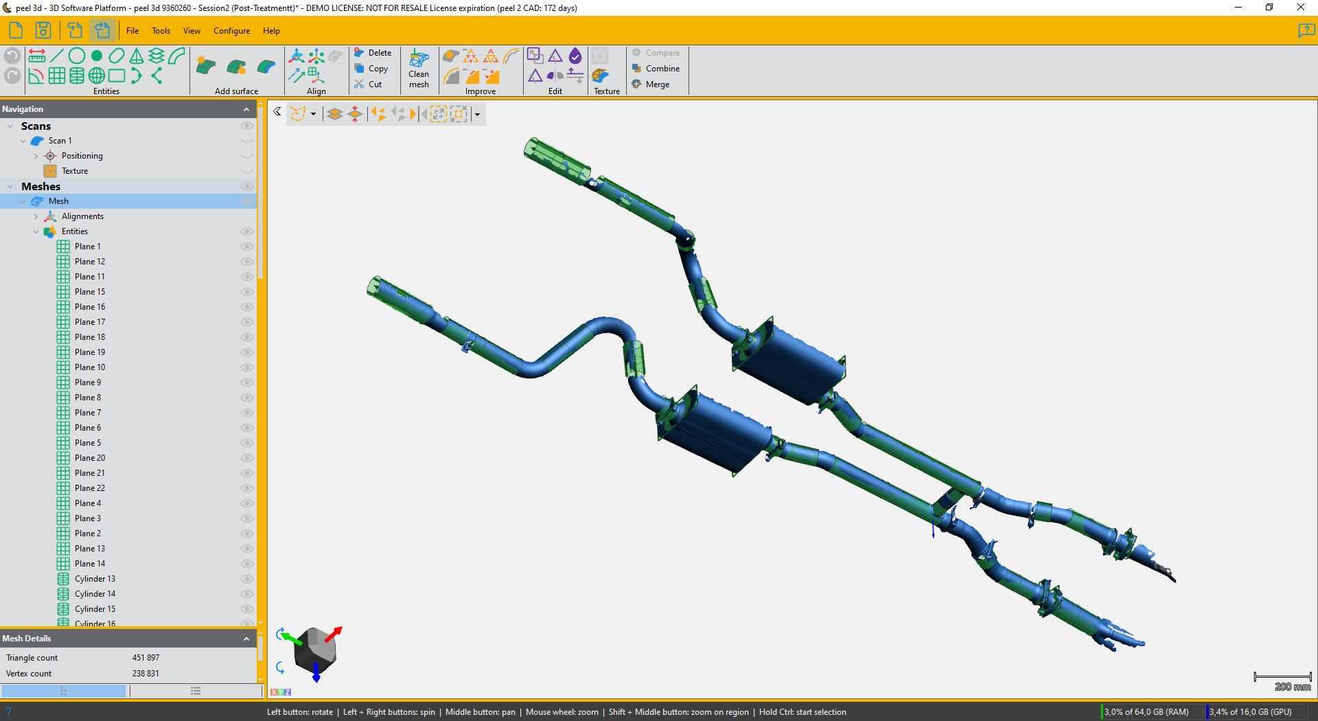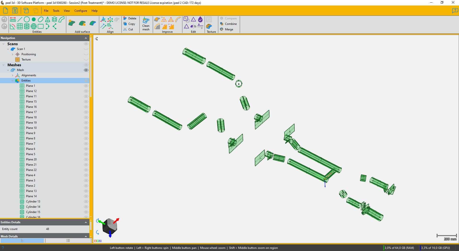 Когда все нужные нам геометрические примитивы извлечены из скана, экспортируем их в файл STEP. Также стоит сохранить полигональную сетку.