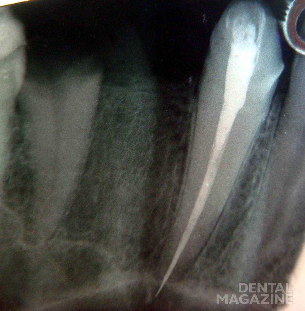 Рис. 9б. Обтурирование корневых каналов: неполное.