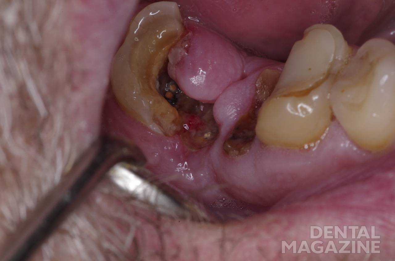 Рис. 4. Гипертрофированная десна препятствует обзору полости.