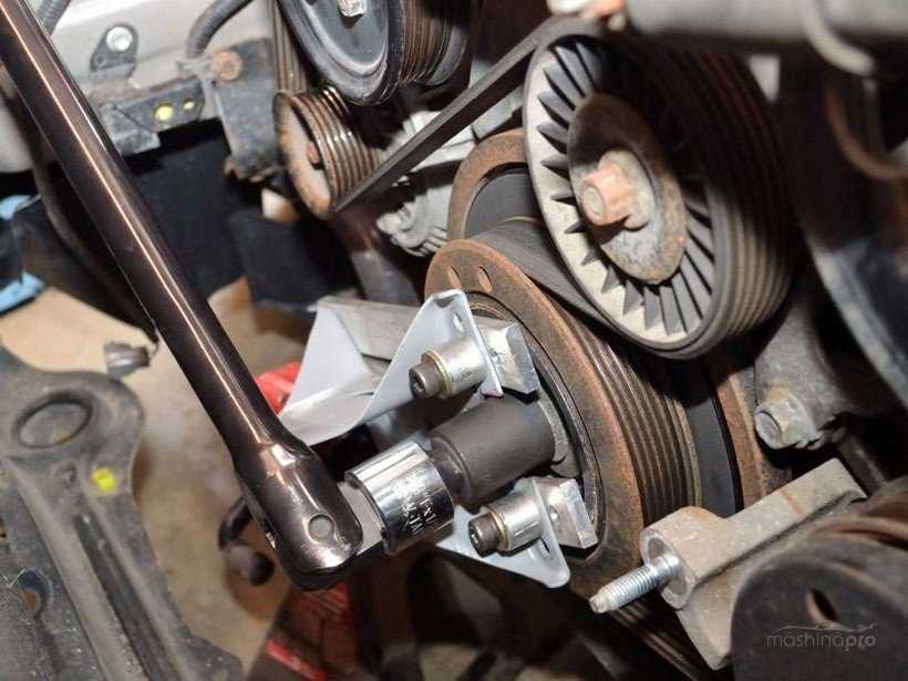 И также потребуется ключ для регулирования натяжения зубчатого ремня. Начинать работу можно в гараже, любой другой горизонтальной площадке. Кроме этого, понадобится набор шестигранников разных размеров. Для удобства выполнения работ лучше всего снять переднее правое колесо.