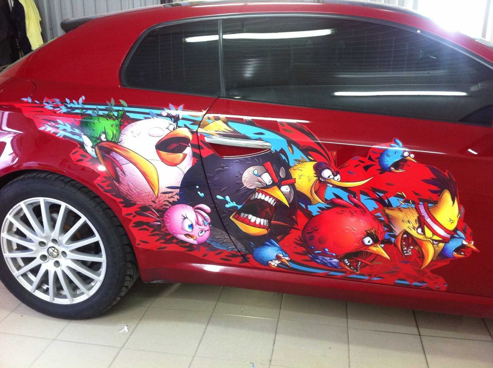 Пример виниловых наклеек на стекло автомобиля и его другие части.